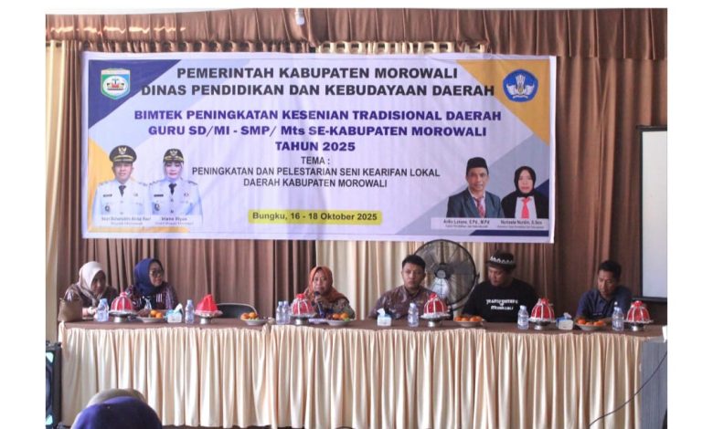 PROLIFIK.ID – Bungku – Pemerintah Kabupaten Morowali melalui Dinas Pendidikan dan Kebudayaan Daerah menggelar Bimbingan Teknis (Bimtek) Peningkatan Kesenian Tradisional Daerah bagi Guru SD/MI dan MTS se-kabupaten Morowali tahun 2025, dengan mengusung tema “Peningkatan dan Pelestarian Seni Kearifan Lokal Daerah.”
